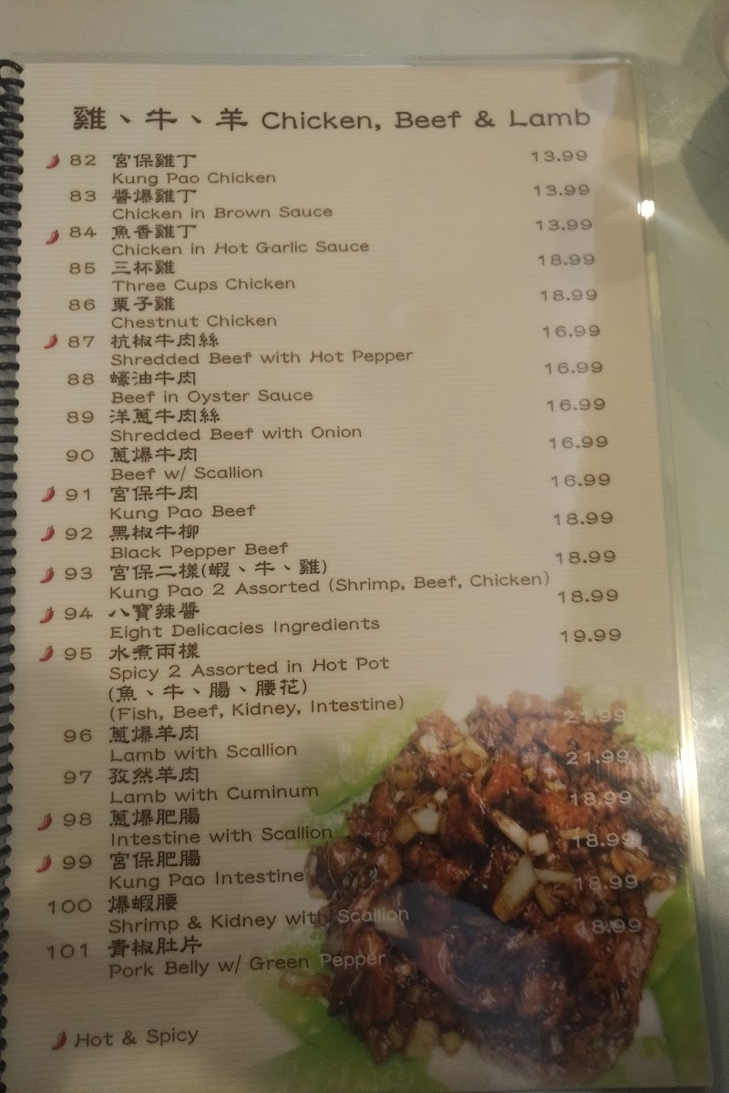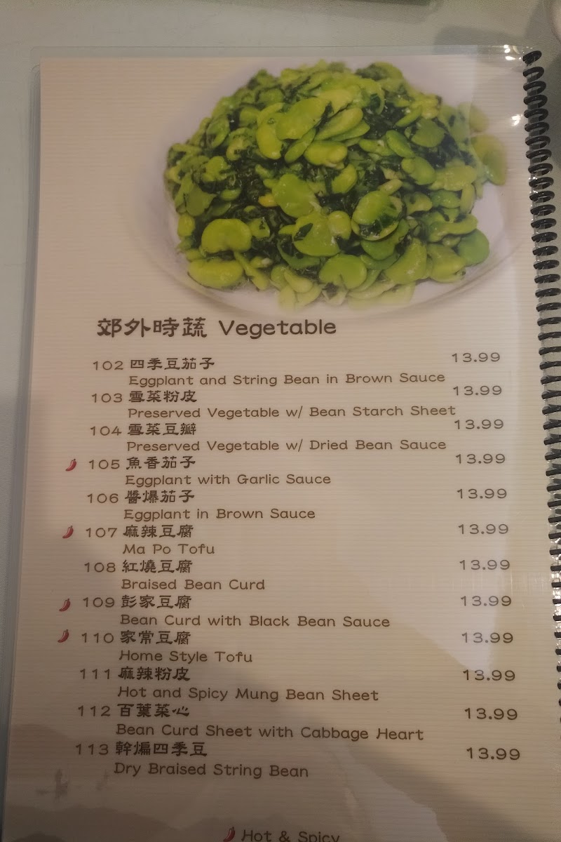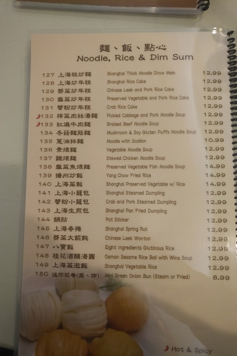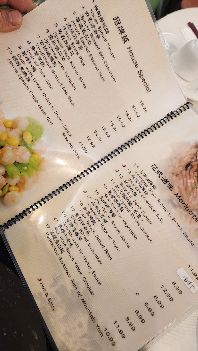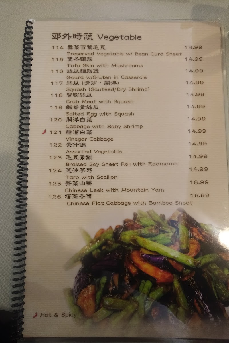 The menu at Southern Mini Town Restaurant offers a diverse selection of flavorful dishes that capture the essence of traditional Shanghai cuisine. The vegetable section features dishes like Eggplant and String Bean in Brown Sauce and Eggplant with Garlic Sauce. For tofu lovers, there’s Bean Curd with Black Bean Sauce and Home Style Tofu. In the house specials, the 秘制梅花腱 stands out as a must-try. For marinated dishes, the 上海油爆蝦 (Shanghai-style shrimp) and Preserved Eggs with Tofu are notable favorites. The chicken, beef, and lamb options include the rich Kung Pao Chicken and Black Pepper Beef, along with the flavorful Three Cups Chicken. Noodles and rice dishes such as Shanghai Thick Noodle Chow Mein and Chinese Leek and Pork Rice Cake offer satisfying meal choices. Specialties like Fish Fragrance Pork Shreds and Shanghai Style Pork Spareribs bring unique tastes to the table, while soups like Hot and Sour Soup and Chinese Leek with Yellow-Fin Tuna Soup are perfect for warming up. For a special treat, try the Shredded Pork with Hot Garlic Sauce or the House Special Drunk Chicken. The menu also offers dishes like Spicy Stir Beef Tendon and Rice Wine Sauce Yellow Croaker for those looking to explore bold flavors. The wide range of options ensures there's something for everyone, from meat lovers to vegetarians, making this restaurant a great spot for a hearty and satisfying meal.